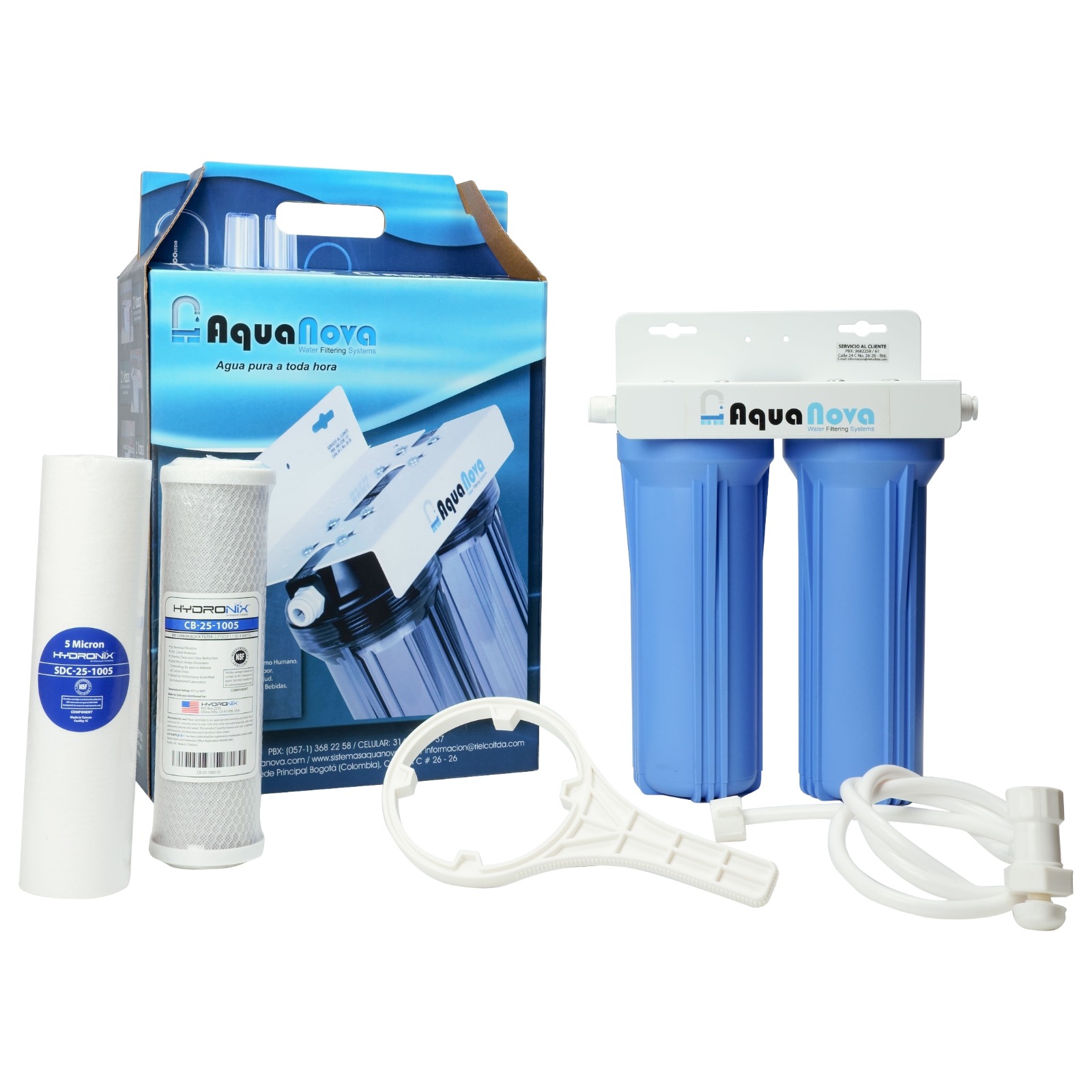 Filtra turbidez, sedimentos, cloro, olores y microorganismos. Se conecta directo a la red, sin grifo adicional. Cartucho microfiltrante y carbón activado. Instalación sencilla bajo lavaplatos. Certificado NSF/FDA.